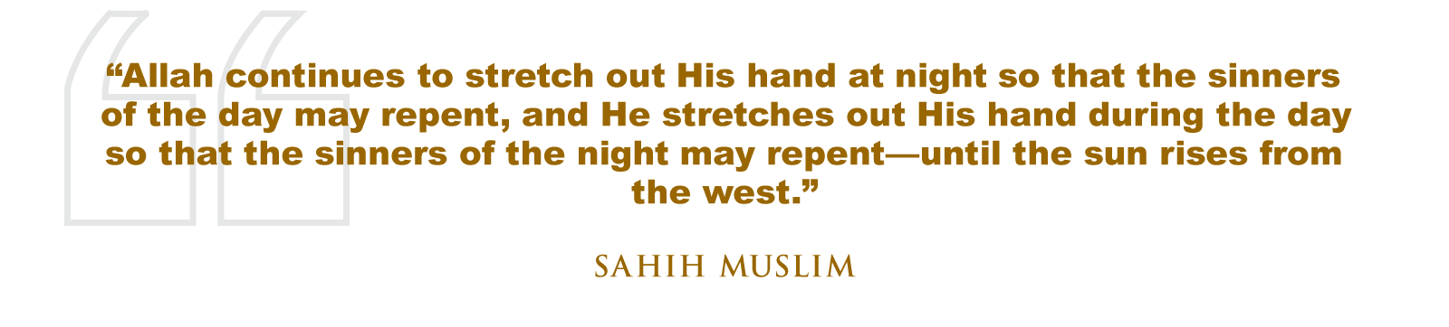 The Prophet (SAW) has said, “Allah continues to stretch out His hand at night so that the sinners of the day may repent, and He stretches out His hand during the day so that the sinners of the night may repent—until the sun rises from the west.” (Sahih Muslim)
