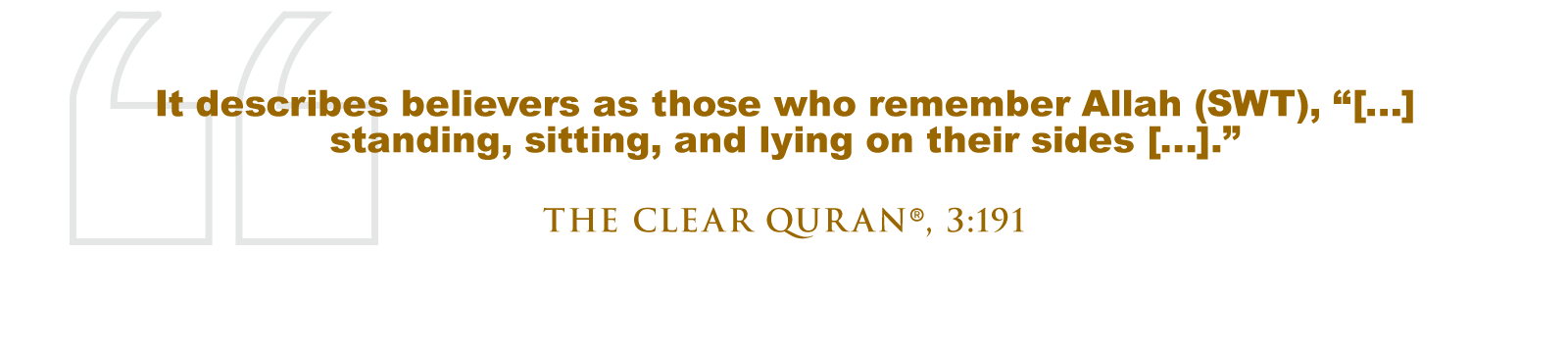 Islamic discussions about Ramadan often focus on visible acts of worship such as taraweeh, Quran recitation, charity campaigns, and community iftars. However, The Quran itself never restricts worship to ritual performance. It describes believers as those who remember Allah (SWT), “[…] standing, sitting, and lying on their sides […].” (The Clear Quran®, 3:191)