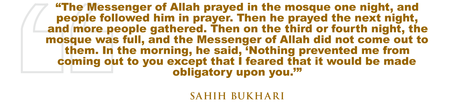 This narration is critical in understanding both the mercy of the Prophet (SAW) and the deliberate restraint with which he introduced devotional practices. His withdrawal from leading Taraweeh, despite its clear benefit, was rooted in his prophetic concern that the Ummah not be overburdened. This concern is consistent with Allah’s (SWT) broader message, “Strive for the cause of Allah in the way He deserves, for it is He who has chosen you, and laid upon you no hardship in the religion—the way of your forefather Abraham.” (The Clear Quran®, 22:78)