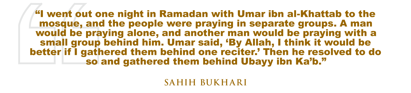 One night in Ramadan, Umar ibn al-Khattab (RA) entered the masjid of the Prophet (SAW) and observed a scene that was outwardly pious, yet inwardly fragmented. People were scattered throughout the mosque. Some prayed alone. Others prayed in small clusters behind different reciters. Every group was engaged in worship, yet the collective experience lacked coherence. The Quran was being recited, but its impact was dispersed. The Ummah was present, but not united. The narrator, Abd al-Rahman ibn Abd al-Qari describes the moment by saying, “I went out one night in Ramadan with Umar ibn al-Khattab to the mosque, and the people were praying in separate groups. A man would be praying alone, and another man would be praying with a small group behind him. Umar said, ‘By Allah, I think it would be better if I gathered them behind one reciter.’ Then he resolved to do so and gathered them behind Ubayy ibn Ka’b.” (Sahih Bukhari)