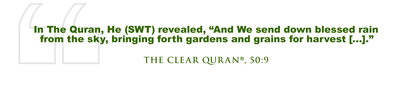 Rain is not just a mechanism, it is a mercy. It brings life to dry earth, nourishes seeds, and enables the growth of crops and forests. Allah (SWT) repeatedly reminds us of this. In The Quran, He (SWT) revealed, “And We send down blessed rain from the sky, bringing forth gardens and grains for harvest […].” (The Clear Quran®, 50:9)